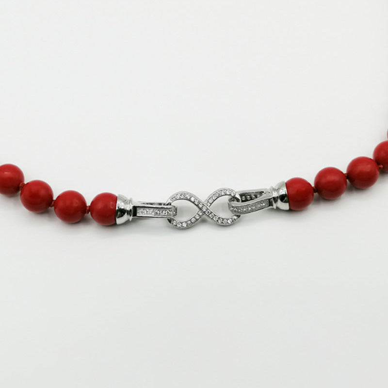 Collana in Agglomerato di Corallo Rosso con Susta ad Infinito in Argento e Strass Argento 925/1000 Lunghezza 53 cm
