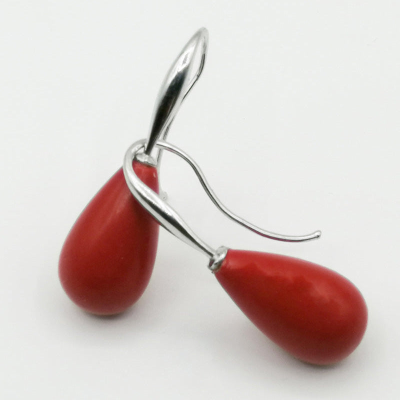 Orecchini in Agglomerato di Corallo Rosso Chiusura ad Amo in Argento 925/1000